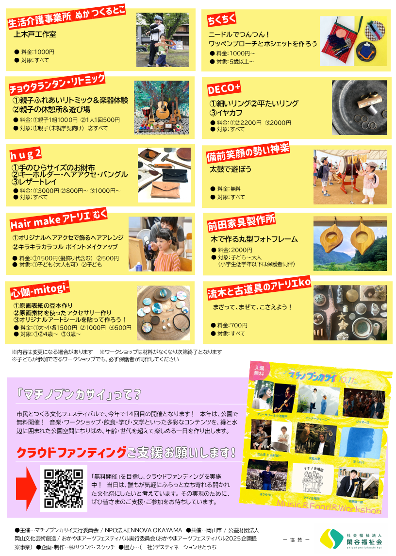 おかやまアーツフェスティバル2025「マチノブンカサイ」に協賛しています。