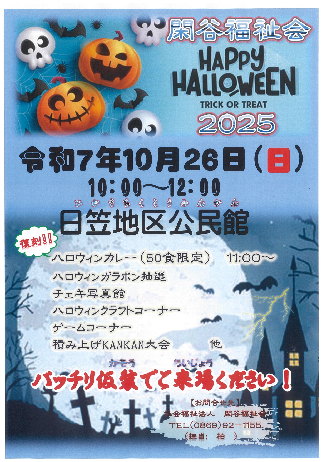 10月26日(日)に日笠地区公民館を会場として「ハロウィンイベント」を開催します。