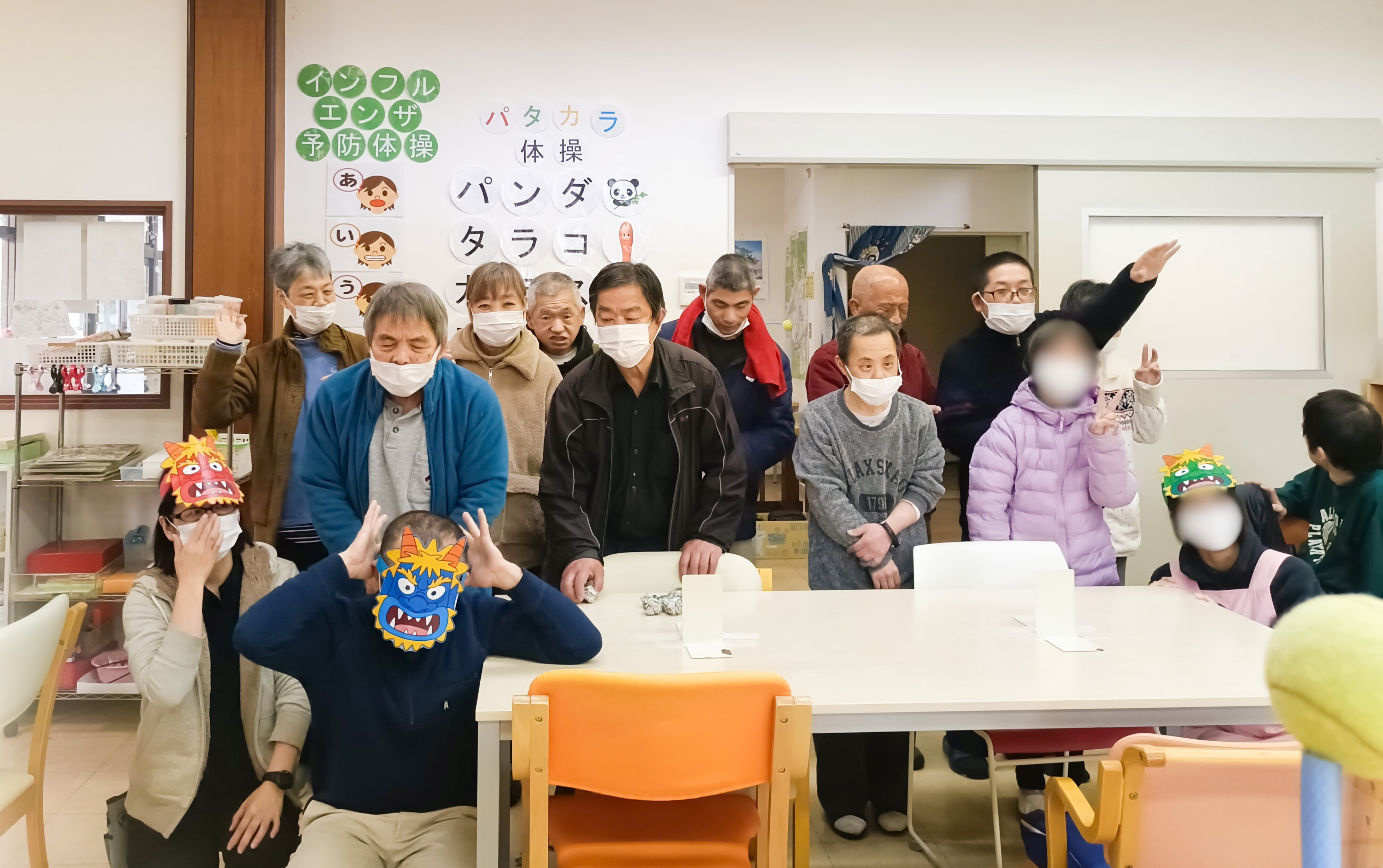 2月といえば「節分」ですが、なんと今年はデイサポに3匹の鬼がやって来ました。