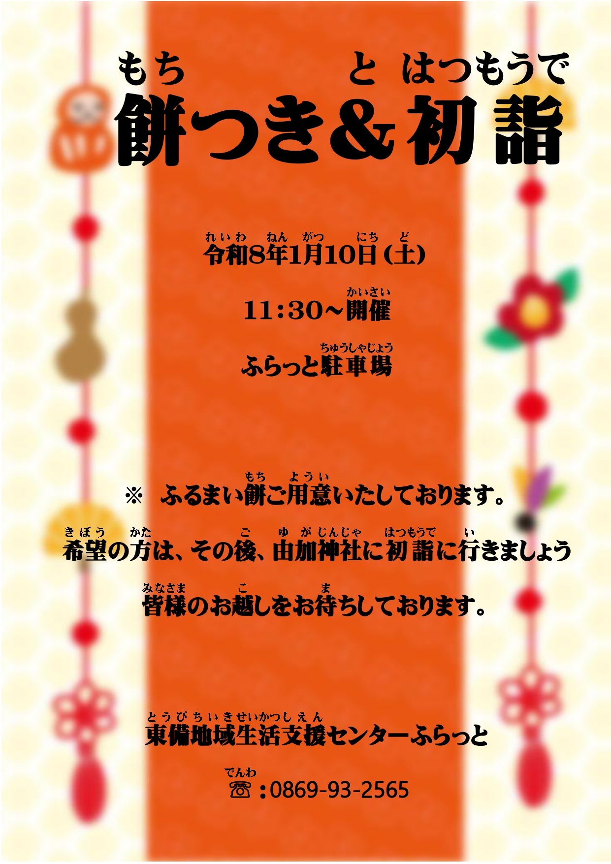 1/10のお餅つき、ふるまいのおもちは無料となっています。