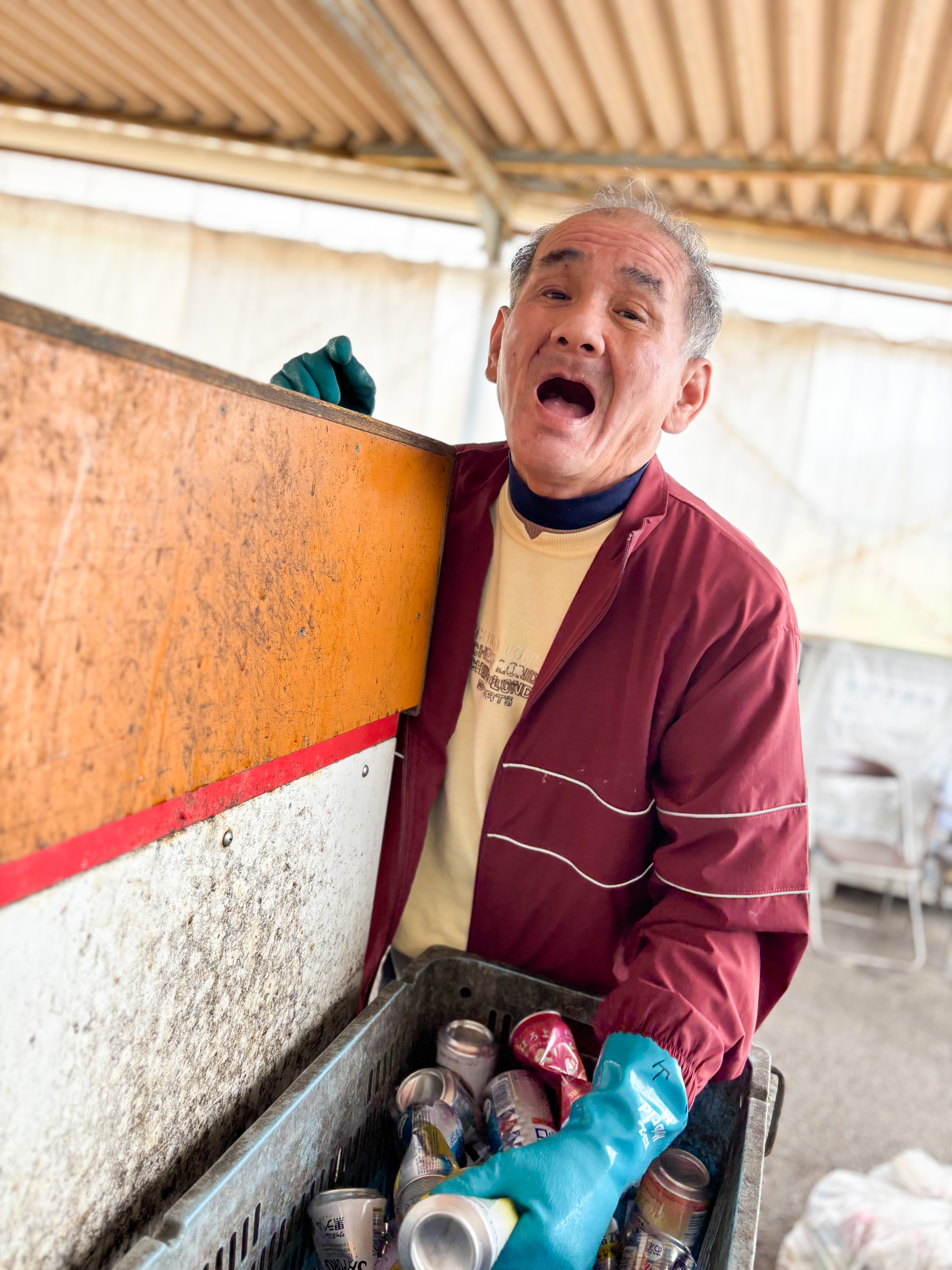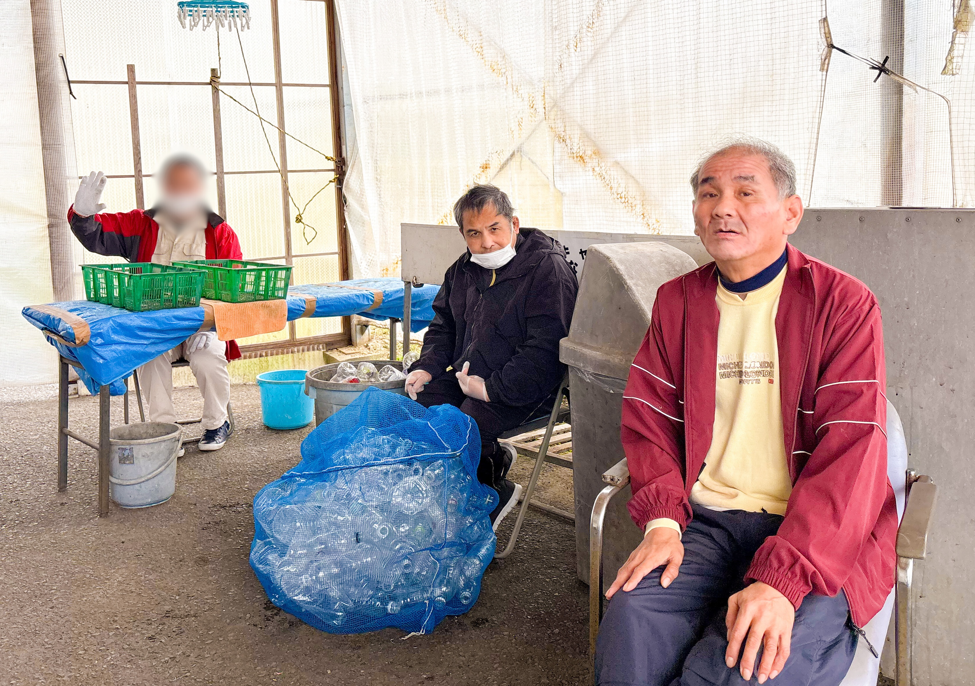 「缶つぶし」「キャップ外し」「ラベル剥がし」など、それぞれの得意を活かした分担作業です。