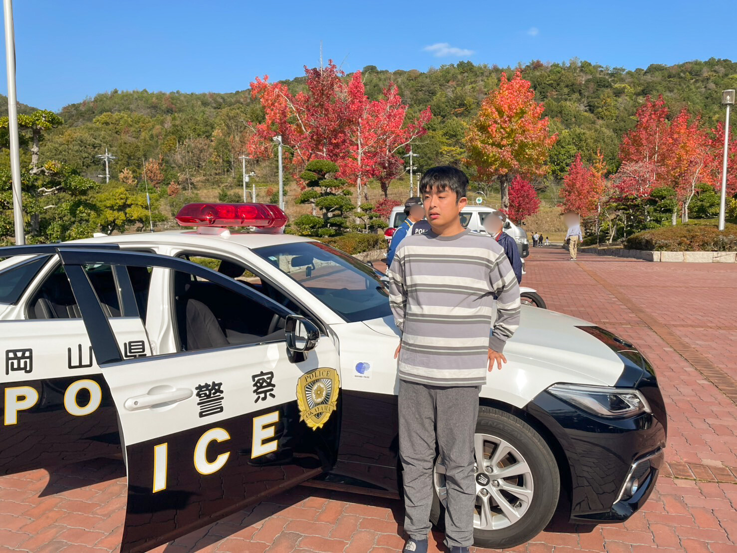 中でも白バイの前でちょっぴり緊張した表情を見せながらも、