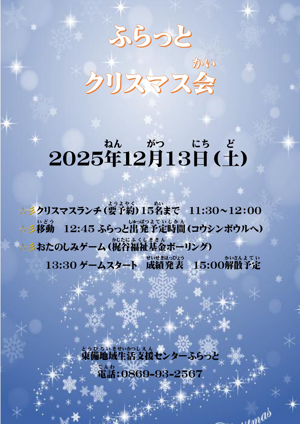 12月はクリスマス&ボウリング大会を開催予定です。