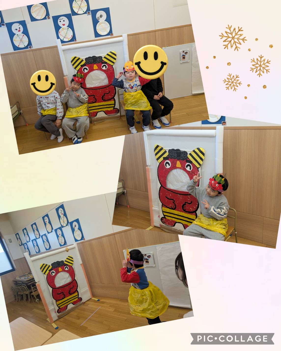 「おにのパンツ」の曲を聴いたり、可愛い鬼に変身したりして、豆まきを楽しみました。