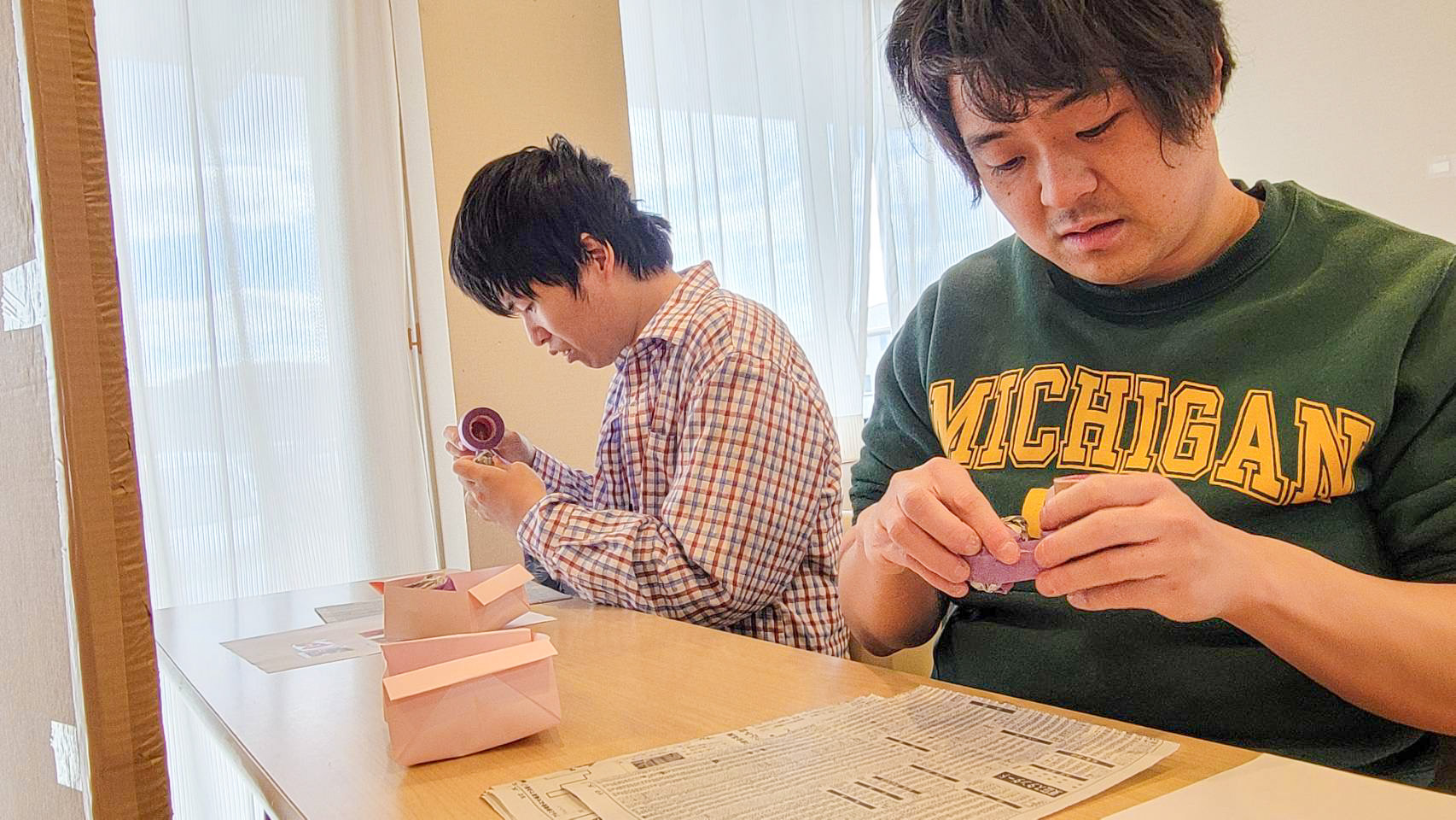 新聞を丸める、テープを貼る、何気ない事ではありますが、